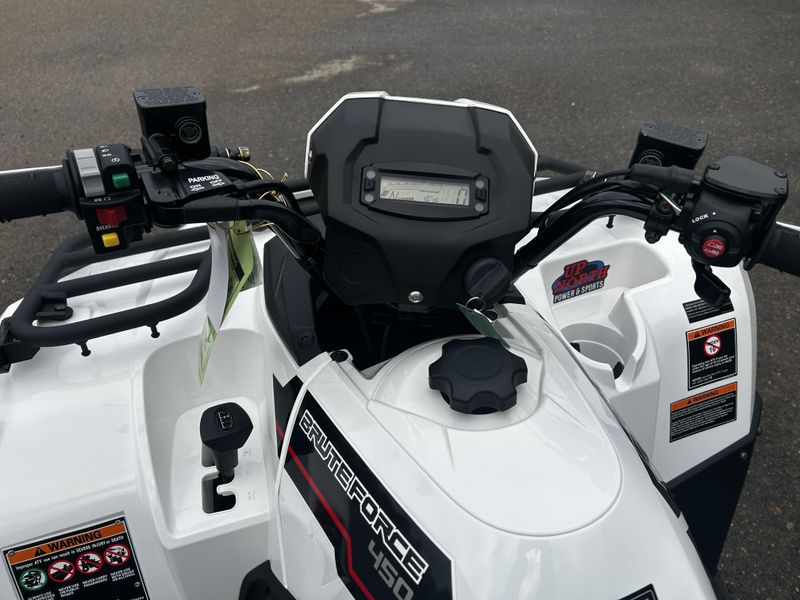 Energize work and play on the all-new Brute Force® 450 4x4 ATV. Powerful, nimble, and stacked with utility features, no other mid-size ATV gives you more. Tackle demanding chores capably, while enjoying unique sporty performance that can only be delivered by Kawasaki. Strong build quality pairs with aggressive style for a durable ride that never fails to excite. No matter the task the Brute Force 450 4x4 ATV is built for you.